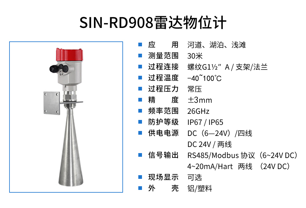 雷達水位計天線發射極窄的微波脈沖,這個脈沖以光速在空間傳播, 遇到被測介質表面,其部分能量被反射回來,被同一天線接收。發射脈 沖與接收脈沖的時間間隔與天線到被測介質表面的距離成正比。